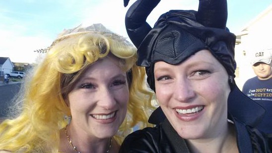 I have the coolest sisters. I’m amazed by how much they support me. Another great example of this happened on Halloween. I like to dress up, but none of the adults in my family dress up anymore. Since we were trick-or-treating far from home at my parent’s house, my sister Malinda, who lives in the same town, decided to locate a last minute costume. I guess she didn’t want me to be the only adult in our party wearing one. She even managed to find the matching Aurora costume to the Maleficent one I was wearing—my very own “beasty.” What a great night!